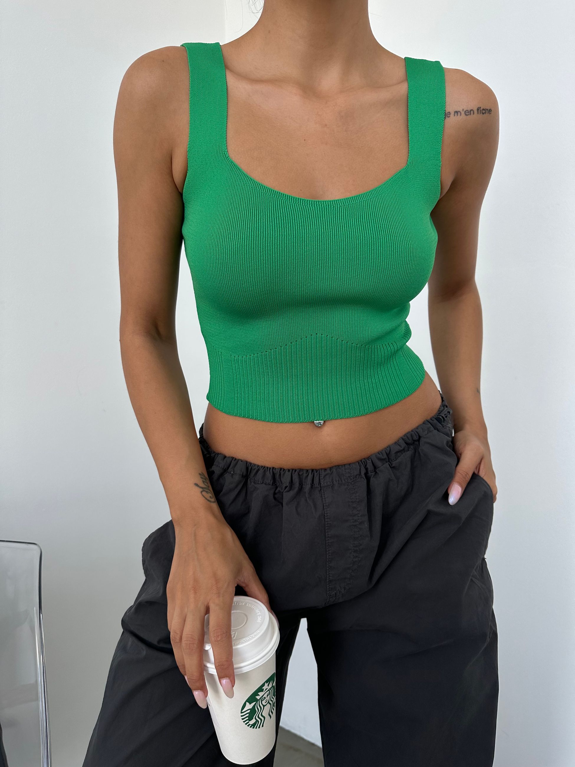 Fitil Detay Crop Triko Bluz
