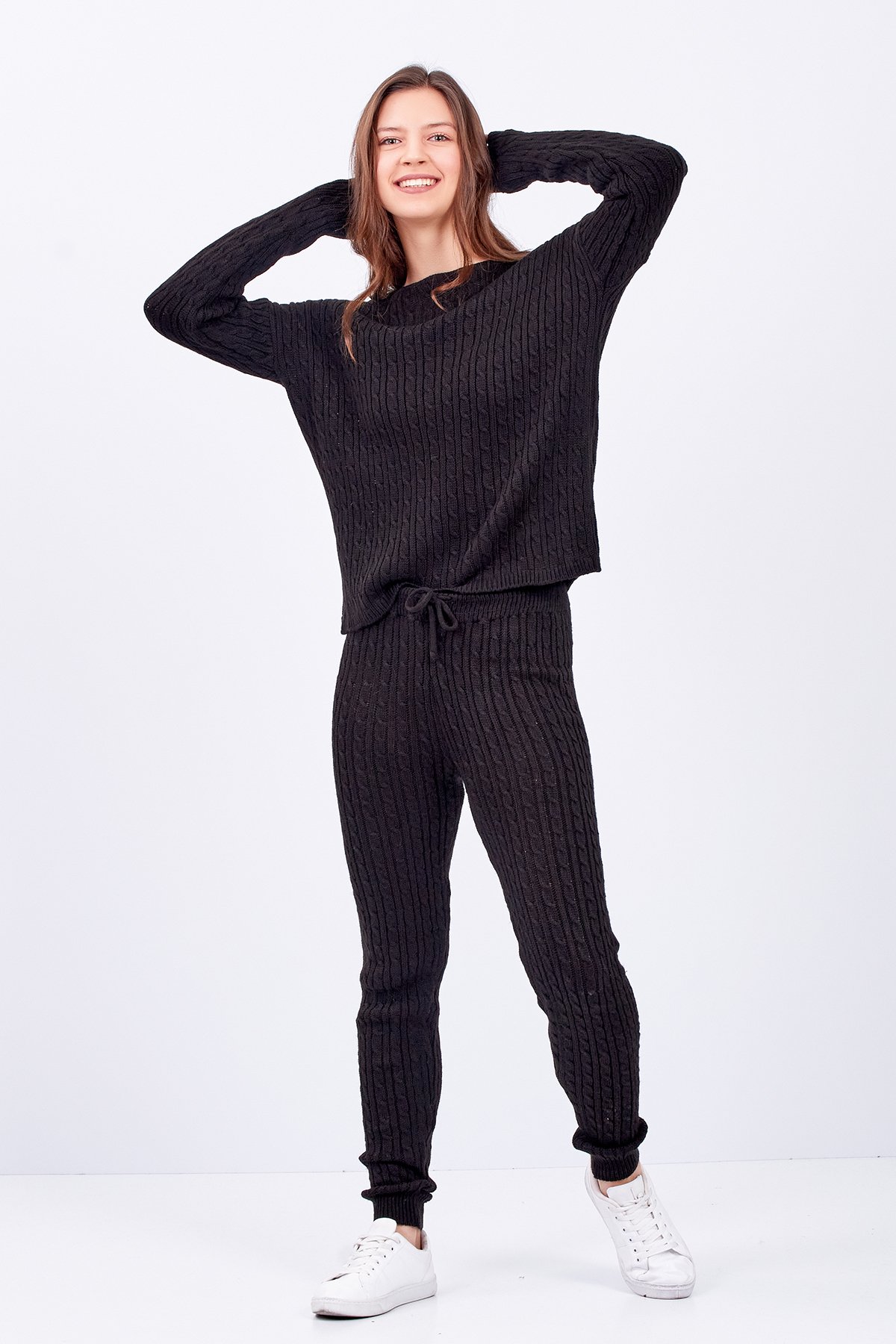 Kadın Saç Örgü Kazak Pantolon Triko Alt-üst Takım