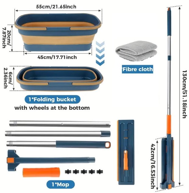 Katlanabilir Temizlik Mopu Ve Tekerlekli Kova Seti